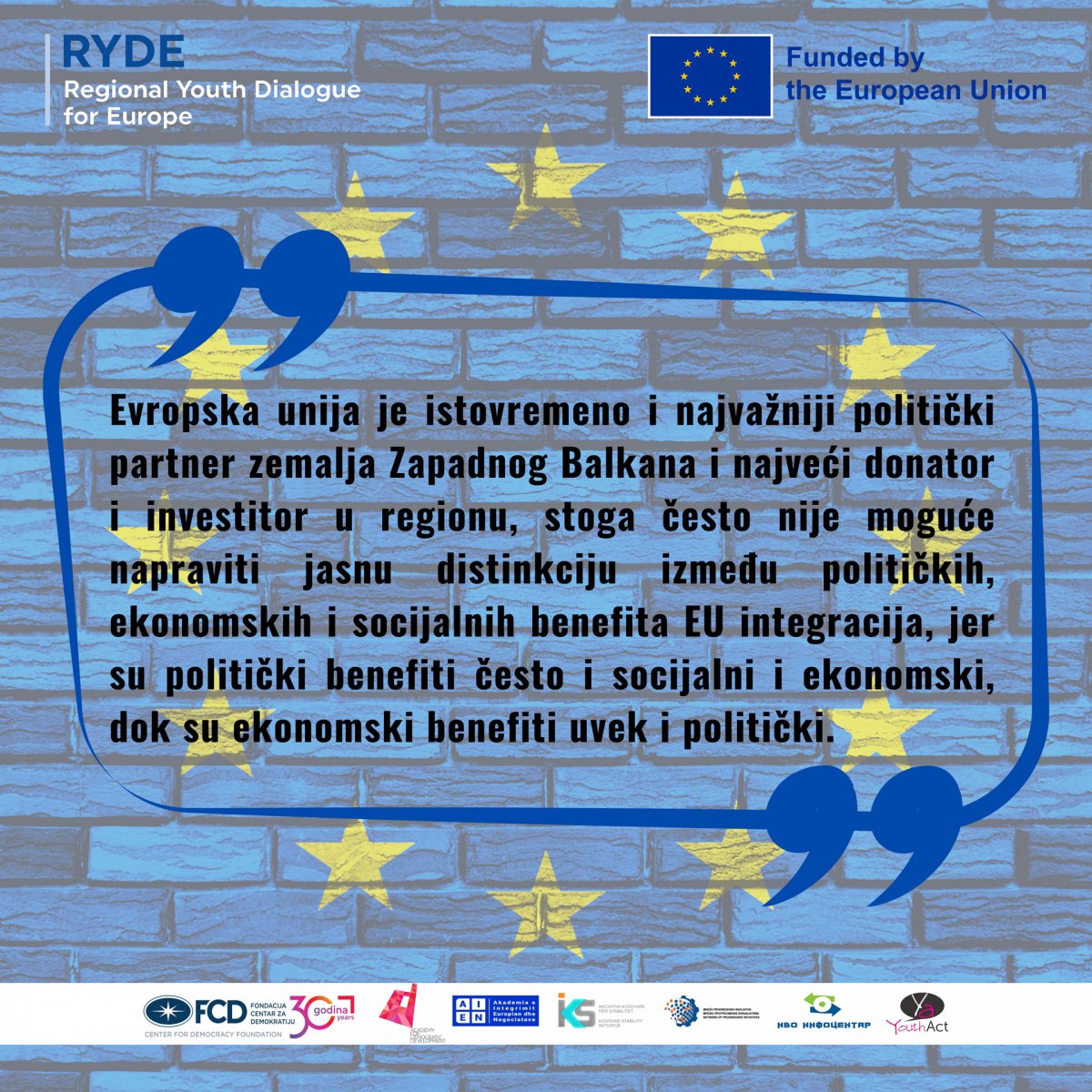Projekat: Regionalni dijalog mladih za Evropu Proces evropskih integracija podstiče razvoj i transformaciju svih društvenih sfera i sa sobom nosi brojne političke, socijalne i ekonomske
